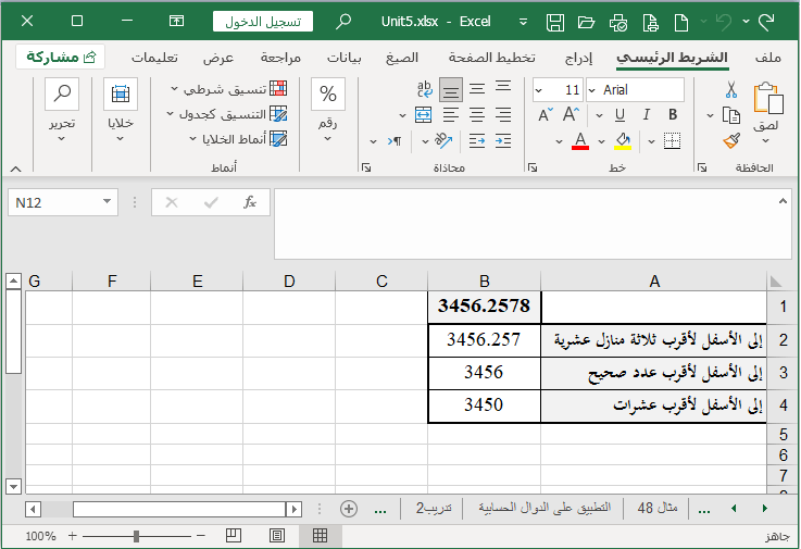 ويبين الشكل التالي المظهر النهائي لورقة العمل بعد تطبيق الخطوات أعلاه.