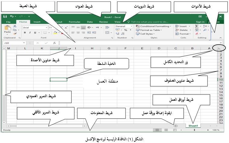 مكونات النافذة الرئيسية لبرنامج الاكسل