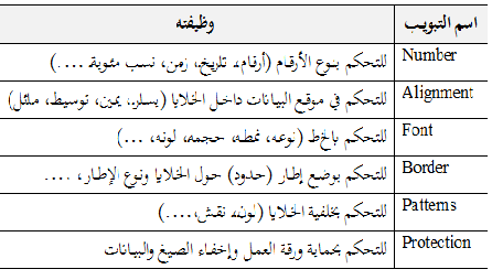 بعد إدخال البيانات في الخلايا يمكننا إجراء التنسيقات اللازمة من تلوين البيانات، تلوين الخلايا، محاذاة البيانات، التحكم بأشكال الأرقام وأنماطها ووضع حدود للخلايا، ولإجراء ذلك اتبع الخطوات الآتية: