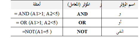 وتكون نتيجة المقارنة إما True صح أو FALSE خطأ، وتُستخدم هذه المؤثرات مع دالة الشرط IF.