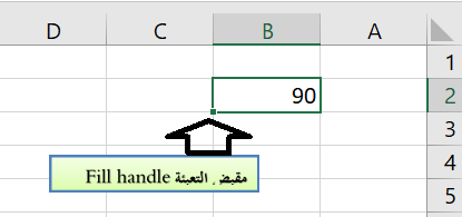 - استخدام مقبض التعبئة لنسخ محتوى خلية على عدة خلايا متجاورة.