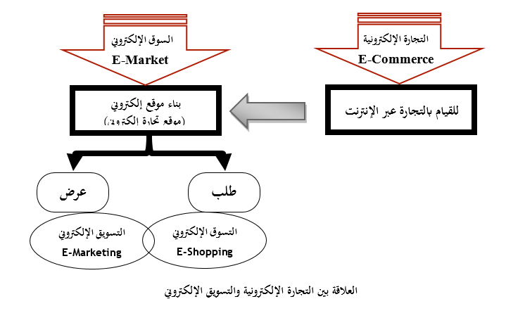 ويرتبط هذا المفهوم بمصطلحين أخرين وهما التسوق الالكتروني والسوق الالكتروني