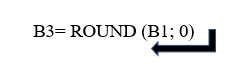 - وبنفس الطريقة لتقريب العدد في 3456.2578 الموجود في الخلية B1 الى أقرب عدد صحيح: