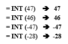 2) إن عملية تقريب الأعداد الحقيقية السالبة حاسوبياً لأقرب عدد صحيح، تكافئ استخدام دالة التقريب إلى الأعلى لأقرب عدد صحيح: