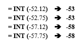 أي لتقريب العدد الحقيقي السالب لأقرب عدد صحيح، يقوم الحاسوب بإهمال الجزء العشري ويضيف واحد إلى خانة آحاده.