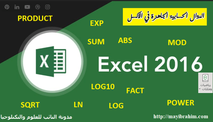 عزيزي القارئ بعد أن أتقنت التعامل مع النافذة الرئيسية لبرنامج الاكسل واكتسبت مهارات التعامل مع خلايا وورقة العمل في اكسل 2016، وتعرفت أيضاً على الصيغة والدوال في الاكسل ومهارات التعامل معهم، صار بإمكانك التعرف على دوال الاكسل المتنوعة وكيفية استخدامها مع امثلة توضيحية، وسنشرح في هذا المقال بعض الدوال الحسابية الجاهزة الأكثر استخداماً في التطبيقات الإدارية.