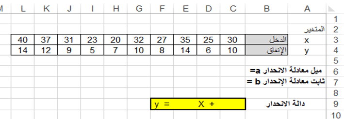 يتضمن برنامج Microsoft Excel مجموعة من الدوال الإحصائية التي تقوم بحساب ثوابت معادلة الانحدار الخطي البسيط والتي بموجبها نتحقق من معنوية معاملات النموذج ومن معنوية النموذج الرياضي ومدى ملاءمته لتمثيل بيانات الظواهر الاجتماعية والنفسية أو التربوية قيد الدراسة والبحث