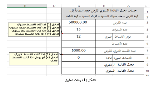 - إذا كان تسديد القرض يتم سنوياً عندئذ أدخل في الخلية C5 القيمة (1).