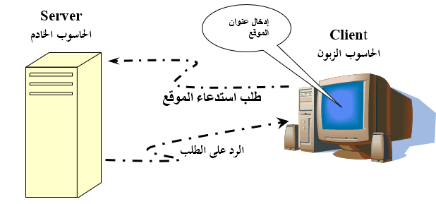 - عند وجود الموقع على الحاسوب المخدم يقوم الحاسوب المخدم بإرسال الصفحة المطلوبة على شكل كود برمجي بلغة HTML باستخدام بروتوكول التحكم بتراسل البيانات Transmission Control Protocol \ Internet Protocol.