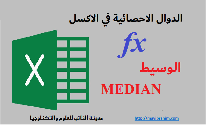 في الاكسل تُستخدم الدالة MEDIAN لإيجاد القيمة التي تقع في الوسط من بين مجموعة من القيم وذلك بعد ترتيب القيم إما تصاعدياً أو تنازلياً، والشكل العام لهذه الدالة هو: