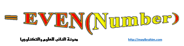الشكل العام للدالة EVEN في الإكسل: