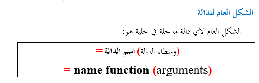 الدالة هي عبارة عن برنامج فرعي يؤدي مهمة محدد، مخزنة في مكتبة برنامج الاكسل، يستدعى بطريقة معينة سنشرحها لاحقاً، ويتضمن الاكسل أكثر من 300 دالة،