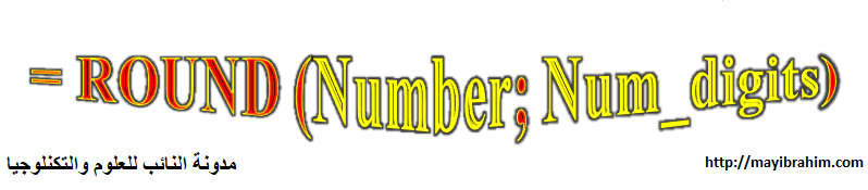 تستخدم الدالة ROUND لتقريب العدد إلى عدد محدد من الخانات العشرية او التقريب الى منزلة (المنازل) حسب قواعد التقريب، ولها وسيطين كما موضح في الشكل العام لهذه الدالة هو: